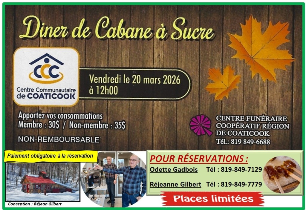 Dîner de cabane à sucre – 20 mars