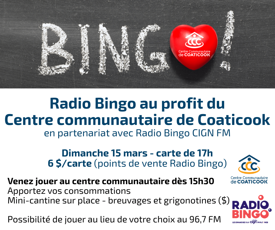 Radio Bingo au profit du centre communautaire – 15 mars